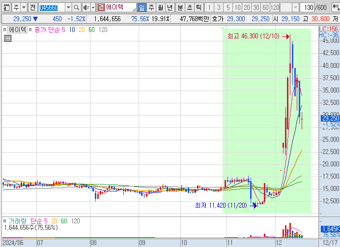 6. 에이텍 (이재명 관련주)